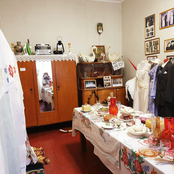 Музей представлен двумя экспозициями. Первая – «Пачатак сямейнага жыцця – вяселле» отображает свадебные традиции белорусской семьи. Представлена экспозиция свадебной атрибутикой 50-х-80-х годов XX века: свадебный стол, свадебные наряды, фотографии молодоженов, приданое невесты, подарки молодым и т.д.